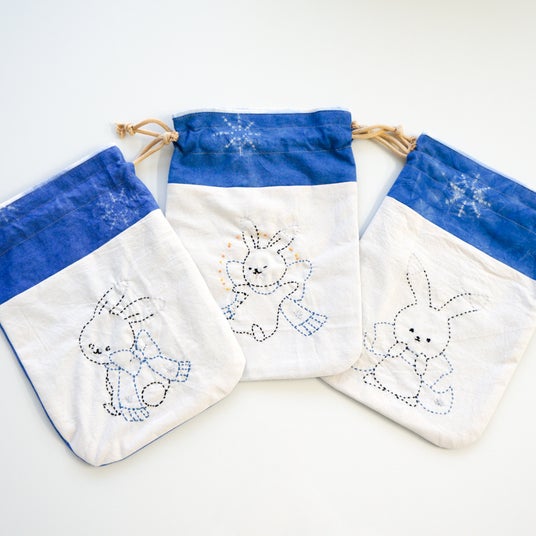 3.「ラビット・ユキネ」刺し子巾着1,485円(税・送料込)社会福祉法人 北海道社会福祉事業団「札幌市あかしあ学園」(札幌市)
