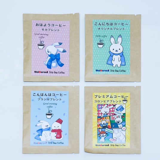 ⓮ラビット・ユキネ コラボコーヒー4種セット865円(税・送料込)一般社団法人 北海道障がい者就労支援スポーツ振興協会「多機能型就労支援施設 ユニ・ノーマ」(札幌市)