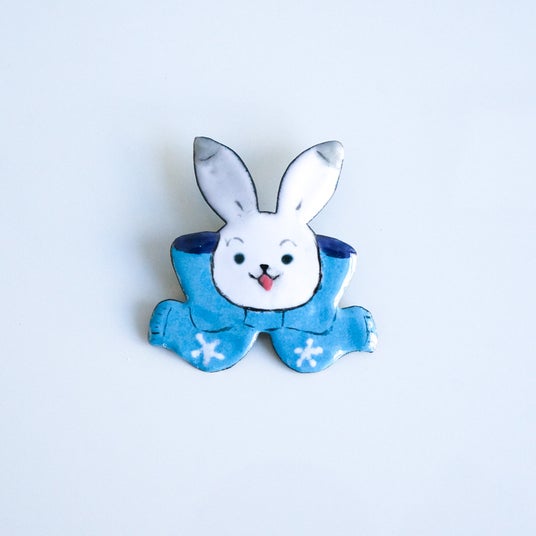 1.「ラビット・ユキネ」七宝焼ブローチ1,385円(税・送料込)倉敷市社会福祉事業団 ふなぐら荘(岡山県倉敷市)