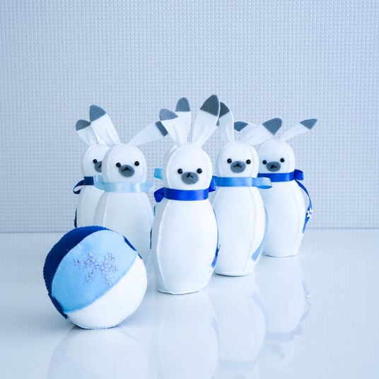 「ボウリング・ユキネ」(高さ19cm・6本、ボール直径9cm・布製)3,200円(税・送料込)