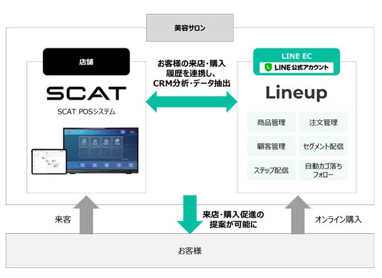 - 美容サロン様は、POSシステムの店販購入履歴にてLINE ECでの購入履歴も表示され、CRM分析により抽出されたお客様の来店確認や購入促進等のご提案が可能となります。