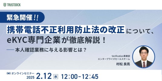 本セミナーでは、法改正のポイントと影響を整理し、ICチップを活用したeKYC導入の必須対策、技術面の注意点や導入時の留意点について、eKYC専門企業がわかりやすく解説します。