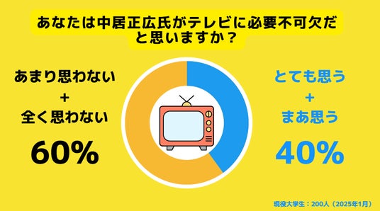 調査の結果、60%の大学生が中居氏はテレビに不可欠でないと回答しました。