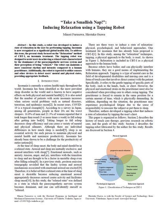 トントンと身体をやさしく叩くロボットの効果は論文にも掲載され、