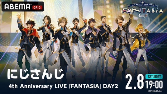 新しい未来のテレビ「ABEMA(アベマ)」は、2025年2月7日(金)、2月8日(土)のそれぞれ19時より、大人気VTuber/バーチャルライバーグループ「にじさんじ」が2022年に開催した4周年記念ライブ『にじさんじ 4th Anniversary LIVE 「FANTASIA」』を全編無料放送するほか、「ABEMA PPV(アベマ ペイパービュー)」にて、1人のライバーを追尾できるカメラ映像「ライバーカメラ」を全楽曲放送することを決定いたしました。