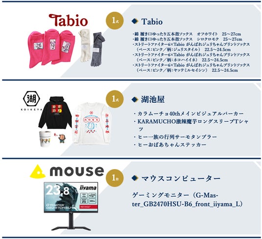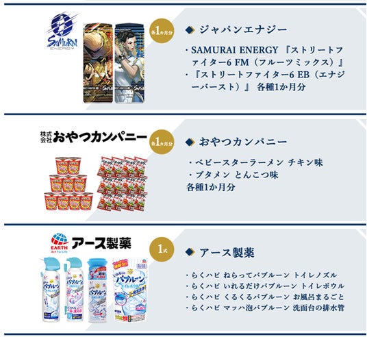 これらの品の中から1つと、『ストリートファイター6』オリジナルデザインTシャツをセットで合計9名様に抽選でプレゼント!