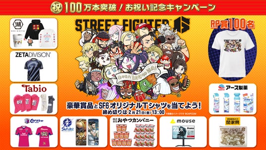 PlayStation(R)5、PlayStation(R)4、Xbox Series X/S、Steamで好評発売中の『ストリートファイター6』が国内累計販売本数100万本を突破いたしました(※)。これを記念して、お祝い記念キャンペーンを開催!