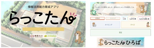 らっこたんとは、「株式会社 教育ネット」と「株式会社 ミラボ」が共同で開発した、情報活用能力を身につけることができるクラウド型デジタル教材です。AIを活用して、タイピングや情報活用に伴う基本的な知識を効率的に習得することができます。
