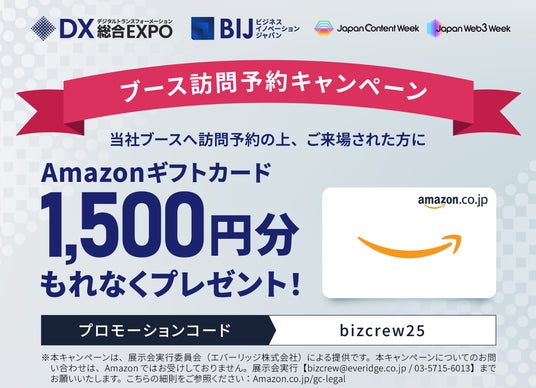 さらに、ブース訪問予約特典として1,500円分のAmazonギフトカードをプレゼントいたします。