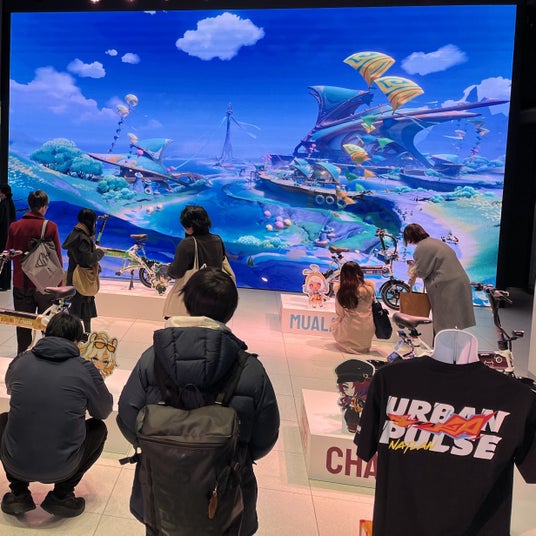 ご来場された皆様は、展示されたコラボグッズや、持参されたグッズと一緒に電動サイクルのラッピング車両の撮影をされ、時折笑みを浮かべていました。また、ナタシェアライド体験では、e-Bike「KUROAD」にまたがり、大型スクリーンに映し出された迫力のある映像を見ながら、サイクリングを楽しんでいました。