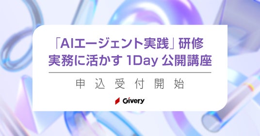 生成AIの企業活用支援およびデジタル人材研修サービス「Track法人向けIT研修」を展開する株式会社ギブリー(本社:東京都渋谷区、代表取締役:井手高志、以下当社)は、AIエージェント構築に関する1日完結型の公開研修を2025年3月に開催いたします。
