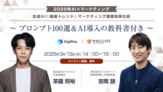 株式会社デジライズ(本社:東京都港区、代表取締役:茶圓将裕)は、「生成AIの最新トレンドとマーケティング業務効率化術セミナー」を開催することをお知らせいたします。