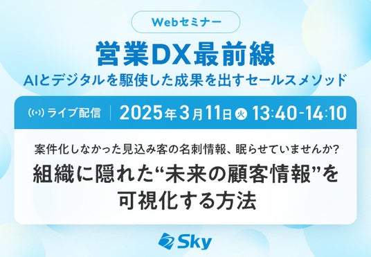 Sky株式会社は、2025年3月11日(火)にオンラインで開催される、「営業DX最前線 AIとデジタルを駆使した成果を出すセールスメソッド」(主催:SBクリエイティブ株式会社(ビジネス+IT))に協賛いたします。