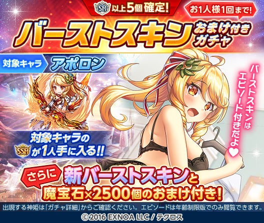 アポロンのバーストスキンを獲得できる、お1人様1回までの限定ガチャです!