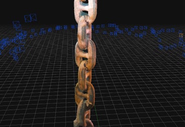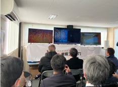 このたび、本カメラを使ったデモンストレーションを、海洋関係の建設工事や洋上風力の点検などに携わる方々に向けて実施しました。ROV(※2)に搭載した状態で水中に投入し、水中構造物のリアルタイム点群表示および3Dモデル作成について紹介しました。本カメラが水中で対象物を捉えた鮮明な画像について、参加者からは、リアルタイムでの解像度の高さや洋上風力における係留(※3)チェーンの監視活用への可能性などに対して評価をいただきました。