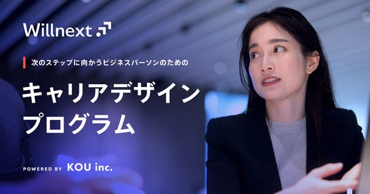 株式会社KOU(本社: 東京都渋谷区 代表取締役:中村真広、以下KOU)は、次のステップに向かうビジネスパーソンのためのキャリアデザインプログラム「Willnext(ウィルネクスト)」を、法人向けに2月26日から提供開始いたしました。
