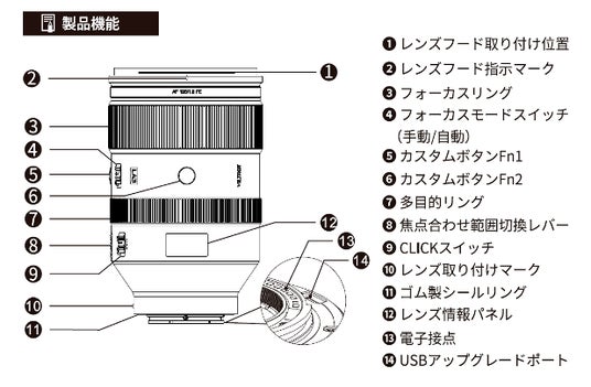 ・レンズ側面には3つの切り替えレバー、2つのカスタムFnボタン、2つのリング、ディスプレイが搭載され、ユーザーの撮影スタイルに応じた細かい調整が可能です。