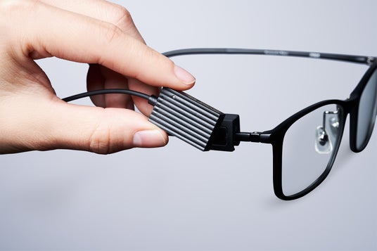 本体であるデバイス部分はわずか4gと軽くて小さい、ケーブルが付いたシンプルなデザイン。アタッチメントでメガネに装着し、コネクタでPCと接続するだけで使い始められます。有線のため充電や接続が切れる心配は不要。JINS商品に限らずほぼすべてのメガネに装着できます。また操作をサポートする補助ソフト※4で、PC画面にコマンド表示を行ったり、操作方法を習得できるチュートリアルを体験できます。