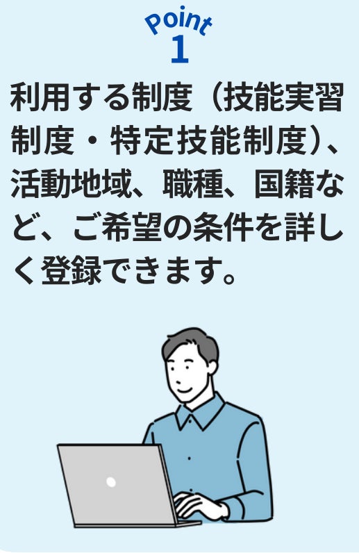 本サービスを通じて、初めての外国人材採用を目指す皆様は条件に沿った監理団体や登録支援機関をスムーズに見つけることができ、採用までの道筋が早まります。
