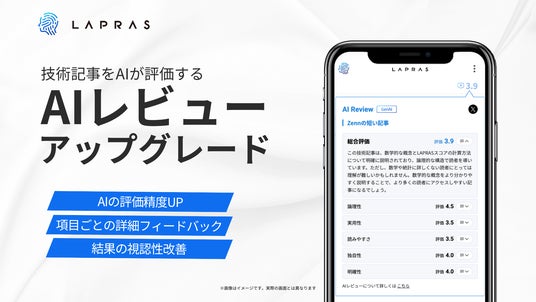 LAPRAS株式会社(所在地:東京都渋谷区、代表取締役:染谷健太郎 以下、LAPRAS社)は、ハイスキル ITエンジニアと企業を最善のマッチングでつなぐ転職サービス「LAPRAS」における、生成AIが記事を客観的に評価する機能「AIレビュー」をアップグレードしました。これにより、記事の採点とコメントの精度が向上し、より詳細なフィードバックを提供できるようになりました。