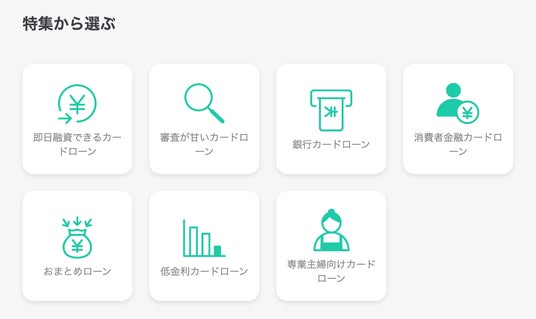 また、ユーザーの利用目的別でもカードローンを特集し、それぞれの状況において最適なカードローンを更に絞り込んで紹介しています。