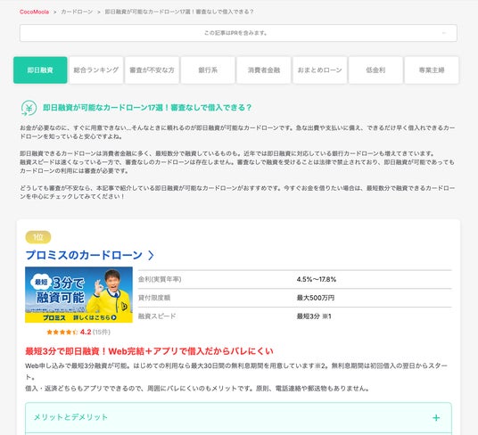 ココモーラでは、カードローンにおいてもユーザーの最適な商品選びをサポートできるように、カードローンのトップページおよび解説ページを開設しました。