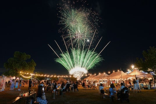 アリーナ開業を祝し、ストークスの試合終了後にお祝い花火が夜空を彩ります。