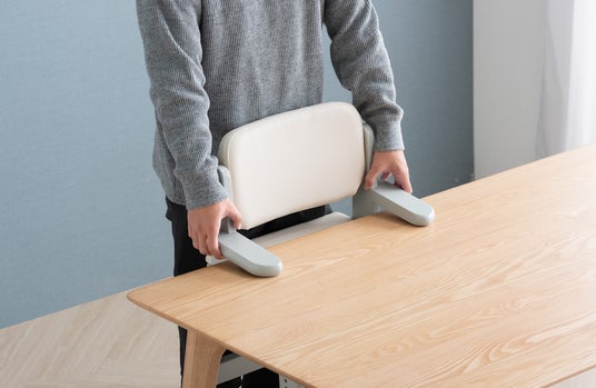 本製品はひじ掛け部分をテーブルに掛けて使用できる設計となっており、床との間に空間ができるためお掃除ロボットがスムーズに通過でき、掃除機もかけやすいのが特徴です。また、アームの裏側には傷防止用のフェルトが付いており、テーブルの天板を傷つける心配がありません。
