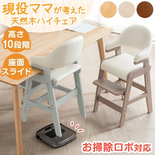 タンスのゲンでは、お掃除ロボット対応のダイニングチェアが人気を誇っており、今回新たに、現役ママのアイデアを取り入れたハイチェアを開発しました。