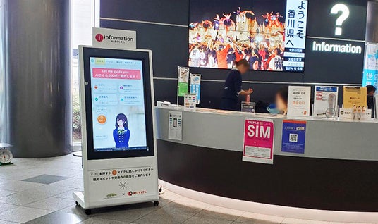 こうした背景を受け、空港利用者にとって分かりやすく快適な案内を提供するとともに、空港スタッフの業務負担を軽減するために、AI技術を活用した「AIさくらさん」の実証実験を実施することとなりました。AIさくらさんは、高松空港1階のインフォメーションセンター横に設置され、訪れるすべての利用者に簡単な操作で観光情報や交通案内を提供します。