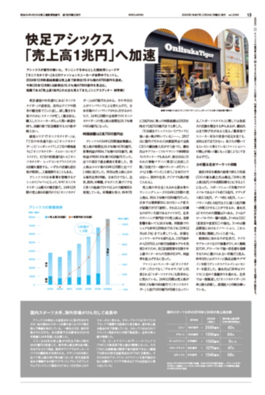 2017年の「ナイキ(NIKE)」の厚底シューズ革命以来、各社のランニングシューズ開発競争が激化しています。「ナイキ」一強から、各社が技術を競う時代へ。25年の箱根駅伝を席巻した、「アディダス(ADIDAS)」の8万円超えシューズ開発の裏側や、「アシックス(ASICS)」「プーマ(PUMA)」「オン(ON)」といった競合の動きをまとめました。コロナ以降、米ニューヨークでは、若い世代にランニングブームが起こっています。多種多様なランニングクラブが生まれているというニューヨークのラン事情を、米「WWD」のウェルネス担当記者が報告。また、都市部のホワイトカラーの趣味としてランニングが広がり、全土で3億人(!)ものランナーがいるという推計もある中国についても、現地に詳しいジャーナリストが寄稿しています。先日の丸亀ハーフマラソンで大迫傑選手が履いていたという情報もある中国スポーツブランド「Xtep」についても触れており、要チェックです。