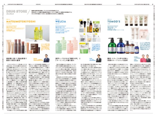 ビューティ付録は「ドラッグ・バラエティーストアのプライベートブランド」を掘り下げる特集です。ドラッグストアの市場規模は過去5年間も右肩上がりで成長し、2023年に9兆円を突破し、ドラッグストアが日常的な消費ニーズを満たしていることがうかがえます。好調を維持する中で、ドラッグストアやバラエティーショップ各社は独自性や打ち出せるプライベートブランド(以下、PB)を強化しています。本特集では売り上げ規模1位をキープするウエルシアや、独自のデータ分析に基づきPBを開発するマツモトキヨシ、他社にないニッチな製品を手掛けるトモズ、ここ数年で転換期を迎えているハンズやロフト、プラザなどの取り組みを紹介しています。