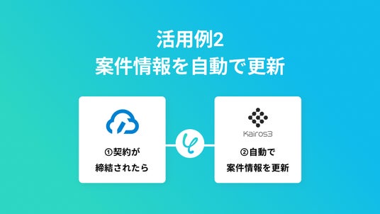 Kairos3は、"次の一手"がデータでわかるMA+SFA一体型ツールです。今回のAPI連携によりYoomが連携している300種以上のツールと連携して、営業活動に関わるあらゆるフローを自動化することができるようになります。