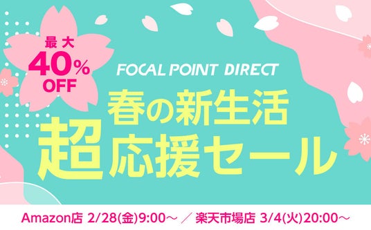 フォーカルポイント株式会社(本社:神奈川県横浜市、代表取締役 恩田英樹 以下フォーカルポイント)は、直営オンラインショップ フォーカルポイント・ダイレクトAmazon店、楽天市場店にて最大40%OFFの春の新生活"超"応援セールを開催いたします。