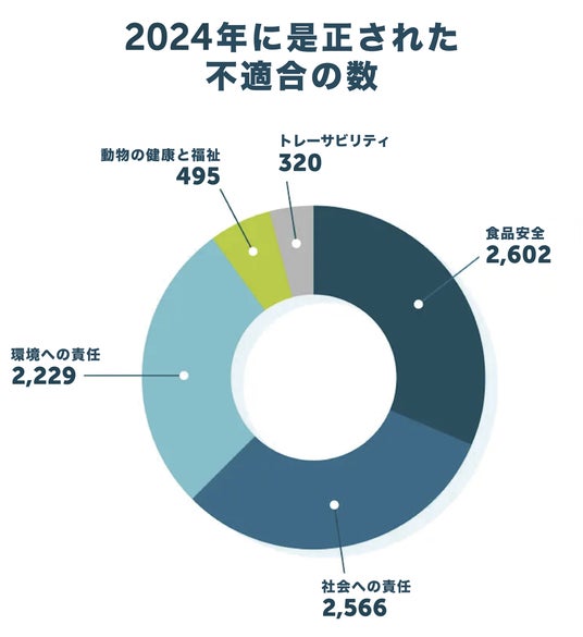 2024年に加工工場、養殖場、ふ化場、飼料工場で行われた是正処置合計8,212件の内訳