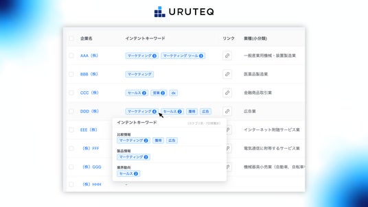ログリー株式会社(本社:東京都渋谷区、代表取締役:吉永浩和、証券コード:6579、以下、ログリー)が提供するアカウントインテリジェンスツール※1「ウルテク( https://uruteq.logly.co.jp/ )」は、企業ごとに取得しているインテントキーワードを分類する新機能「インテントカテゴライズ」の提供を2025年2月19日(水)に提供開始しました。これにより、「比較情報」「製品情報」「業界動向」という企業のインテントキーワードを分類することで最適なアプローチ先の選定や訴求軸の策定がより容易になります。