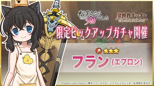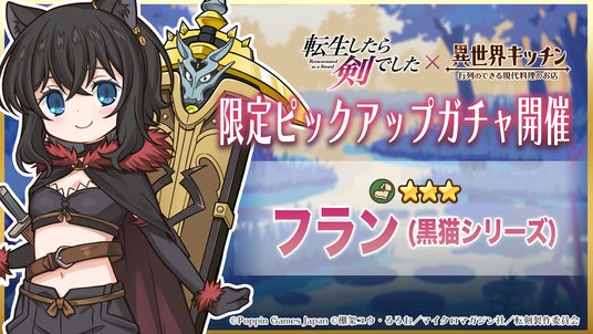 本コラボでは、TVアニメ『転生したら剣でした』の人気キャラクター「フラン」と「師匠」がイベント限定ストーリーに登場!「フラン(+師匠)」はガチャから入手ができます。