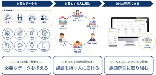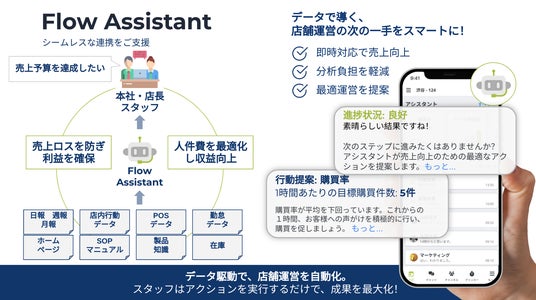 同社のAI搭載型プラットフォーム「Flow Assistant(アシスタント)」は、リテール業務を革新し、本部エグゼクティブから店舗スタッフまで、あらゆるレベルの小売従業員に対して、実用的なデータ主導のインサイトを提供します。これにより、販売最大化、業務効率化、そして最終的な利益向上を実現します。