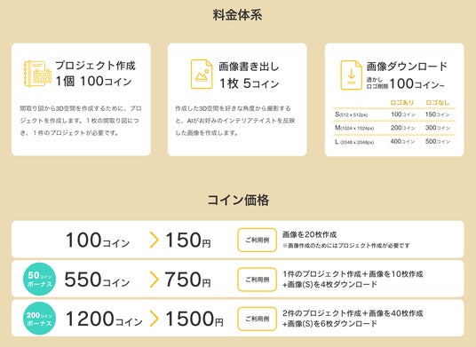 従量課金制となっております。サービス内通貨(コイン)をご購入頂き、利用する機能に応じてそのコインでお支払い頂きます。