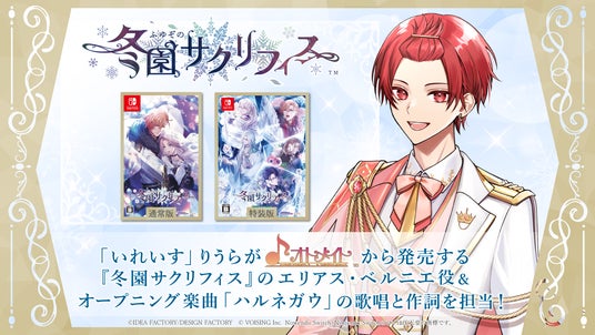 株式会社VOISING(本社:東京都港区、代表者:ないこ、以下、VOISING)所属の2.5次元アイドルグループ「いれいす」のメンバーであるりうらが「エリアス・ベルニエ」役を担当する、オトメイト新作ゲーム【「冬園サクリフィス」】が本日2025年2月27日(木)に発売開始したことをお知らせいたします。さらに、オープニング楽曲「ハルネガウ」はりうらが作詞を行い歌唱も担当しており、りうらが本作で披露する新たな一面に、ファンから注目が集まっています。