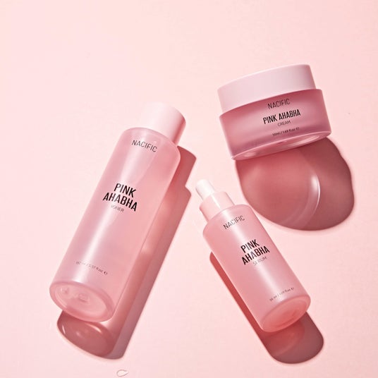 - ピンクAHA BHAセラム (50ml): 肌をやさしくケアし、しっとりとした爽やかな使用感を提供します。