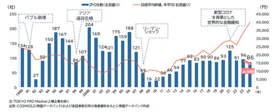 2024年に新規株式公開(IPO)した企業(以下、2024年IPO企業)は86社だった。前年の96社から10社減少し、3年連続で100社を下回った。
