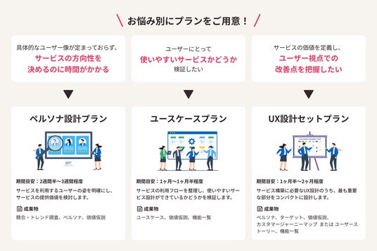 お悩み別にペルソナ設計プラン・ユースケースプラン・UX設計セットプランをご用意