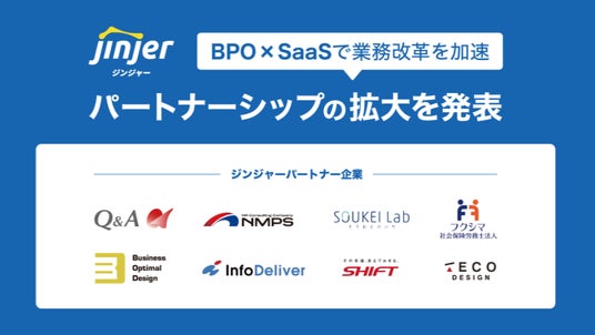 クラウド型人事労務管理システム「ジンジャー」を提供しているjinjer株式会社(本社:東京都新宿区、代表取締役社長:桑内 孝志 以下、jinjer)は、企業の人事労務業務の効率化を支援するため、BPO(ビジネス・プロセス・アウトソーシング)パートナーシップの拡大を発表しました。これに伴い、「ジンジャー」の導入支援体制を強化し、企業が直面する「採用難・人手不足」などの課題に対応する包括的なソリューションを提供します。