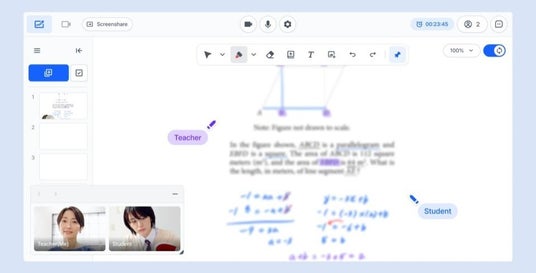 これを活用することで、授業では、先生が事前に用意した教材をホワイトボード上で共有しながら進行し、学生はコメントや質問を書き込むことが可能です。これにより、従来のオンライン授業のような一方通行の講義ではなく、リアルタイムでの意見交換や質問がしやすい、双方向型の学習体験を実現します。学生が主体的に授業に参加できることで、理解の定着を促し、より深い学びへとつなげます。