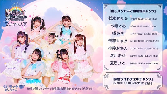 さらに、Wチャンス賞を実施!くじ1枚ごとに抽選で「メンバーとの生電話(全7種)」「集合ワイドチェキ」をプレゼント!くじ購入者全員が参加可能です。