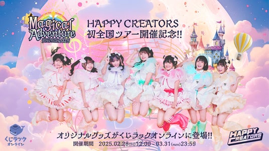 カルチュア・エンタテインメント株式会社は、アイドルグループ「HAPPY CREATORS」とコラボレーションしたオンラインくじ「くじラックオンライン」を2025年2月28日(金)より販売いたします。ここでしか手に入らない各メンバー写真がデザインされた素敵なグッズがハズレなしでゲットできます。さらに、くじ1枚ご購入ごとにWチャンス賞の抽選が行われ、当選した方は特別な賞品が獲得できます