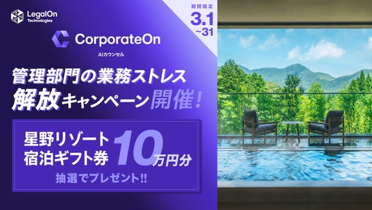 株式会社LegalOn Technologies(本社:東京都渋谷区 代表取締役 執行役員・CEO:角田望、以下LegalOn Technologies)は、管理部門が受けるあらゆる問い合わせ対応のストレスを解消するAIカウンセル「CorporateOn」のCM放映を記念し、SNSキャンペーンを開催します。2025年3月1日~3月31日までの期間中、SNSのX上でハッシュタグ「#AIカウンセル」をつけて管理部門の方が日頃感じている業務上のストレスを投稿いただくと、抽選で5名様に10万円分の星野リゾート宿泊ギフト券をプレゼントします。AIカウンセル「CorporateOn」とは、社内規程やマニュアルなど、事業部から届くあらゆる問い合わせを生成AIと独自のRAG技術によって、ワンクリックで一次回答するサービスです。これにより、管理部門における問い合わせ1件あたりの対応時間や対応回数を削減することができます。
