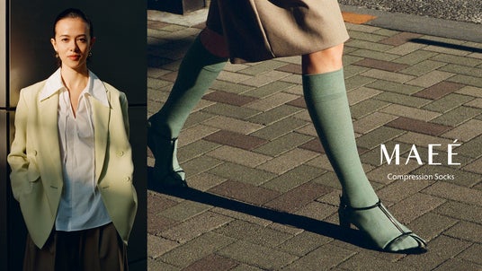 MAEEコンプレッションソックスは、2023年10月の発売以来、ファッション性の高い上質なソックスでありながら、履くだけで気になる脚のむくみを予防・軽減できる着圧ソックスとしてご好評をいただいています。(一般医療機器届出済)