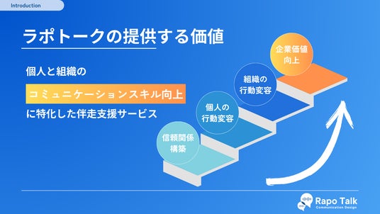 ラポトークは、「個人と組織の"コミュニケーションスキル向上"に特化した伴走支援サービス」です。